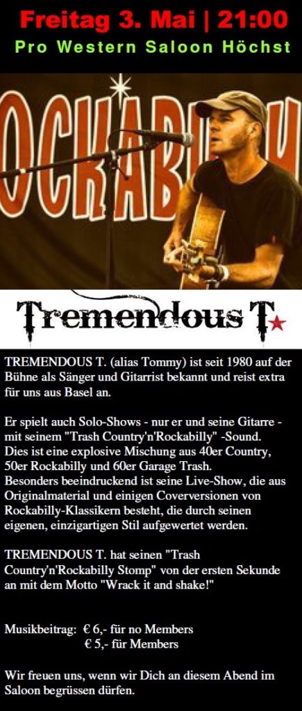 live on friday im Saloon Veröffentlicht am 30. April 201930. April 2019 von Vize Wir freuen uns auf ein tolles Konzert mit Tremendous T.